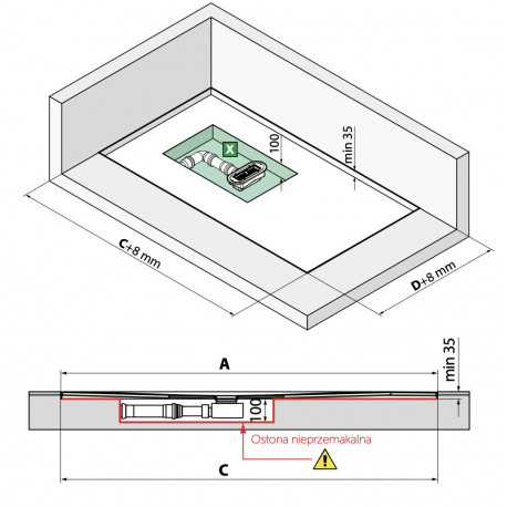 Novellini > Shower trays > Acrylic shower trays > Custom > Shower tray rectangular Novellini Custom, 180x80cm, montaż on the floor, height 3,5cm, acrylic, możliwość przycinania, terra