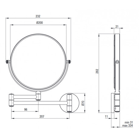 Deante > Bathroom Accessories > Bathroom mirrors > Round > Cosmetic mirror na ruchomym ramieniu dwustronne, Deante Round - nero (black mat)