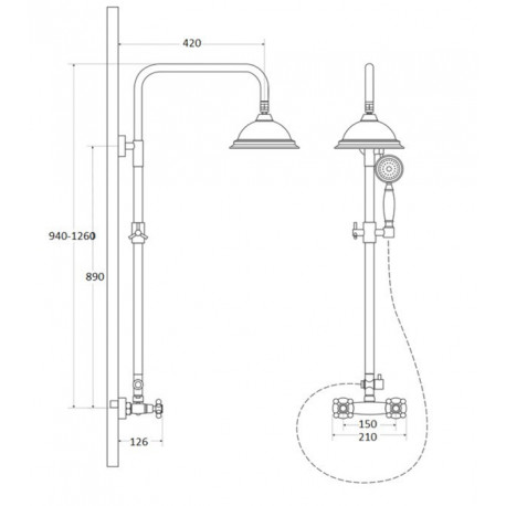 Besco > Fittings/ taps retro > Bathtub and shower mixers retro > Retro > Shower set Besco Retro - gold