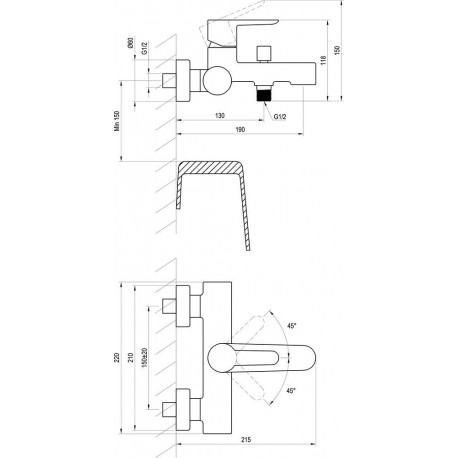 Ravak > Fittings/taps > Bathtub mixers > Puri > Bath tap Ravak Puri, wall mounted, with switch - chrome
