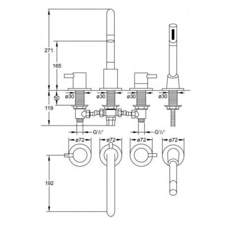 Steinberg > Fittings/taps > Bathtub mixers > Series 100 > Bath tap Steinberg Seria 100 with shower set 4-hole - chrome