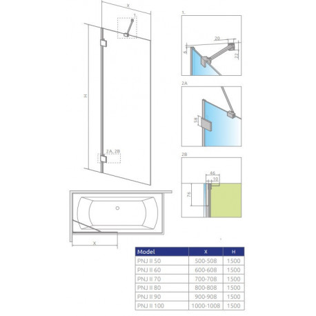 Radaway > Shower cabins > Bathtub screens > Essenza Pro > Parawan nawannowy Radaway Essenza Pro Brushed Gold PNJ II, glass transparent, 80x150cm, profil gold szczotkowany