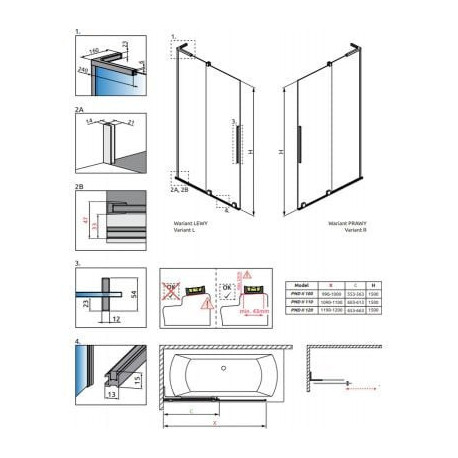 Radaway > Shower cabins > Bathtub screens > Furo > Parawan nawannowy Radaway Furo SL PND II 100, lewy, glass transparent, 100x150cm, przesuwny, profil gold szczotkowany