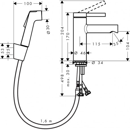 Hansgrohe > Fittings/taps > Bidetki > Zesis > Washbasin faucet Hansgrohe Zesis S single lever 100 z główką Bidette i wężem 160 cm, without waste - black mat