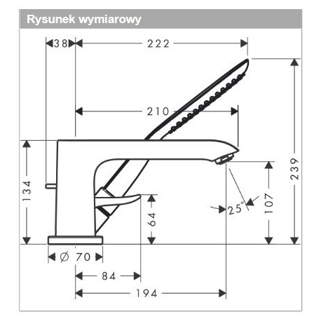 Hansgrohe > Fittings/taps > Multi-hole bathtub mixer taps > Metris E > Bath tap Hansgrohe Metris 3-hole single lever on the rim of the tub - chrome