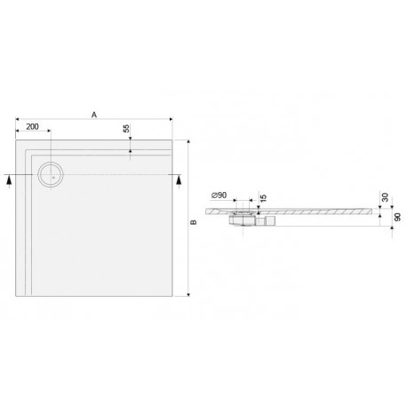 Sanplast > Shower trays > Conglomerate shower trays > Rectangular/square > Square shower tray Sanplast B-M/SPACE 90x90x1,5 biew, odlew mineral - white