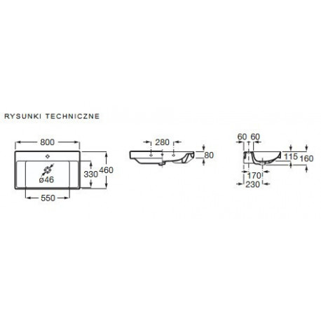 Roca > Sanitary ceramics > Countertop washbasins > Ona > Washbasin wall mounted rectangular Roca Ona Fineceramic, 80x46cm, z overflow - white