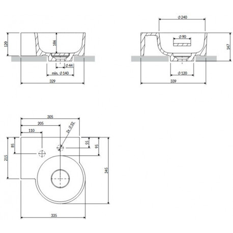 Omnires > Sanitary ceramics > Countertop washbasins > Ovo M+ > Countertop washbasin/hanging Omnires Ovo M+, left, 33 x 34 cm, without overflow - ash grey mat