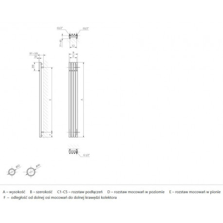 * Grzejnik występuje w wodnej wersji i dostępny również w wersji elektrycznej z grzałką.