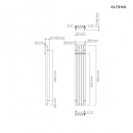 Oltens > Grzejniki > Decorative radiators > Stang > Grzejnik dekoracyjny Oltens Stang 150x26 cm - white