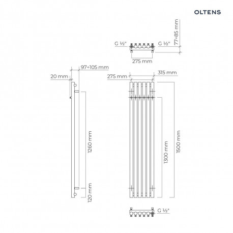 Oltens > Grzejniki > Decorative radiators > Stang > Grzejnik dekoracyjny Oltens Stang 150x31,5 cm - white