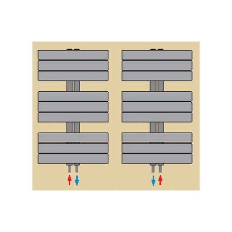 Płaskie kolektory poziome grzejnika łazienkowego Apolima, gięte w łagodny łuk, sprawiają, że grzejnik ten jest niezwykle elegancki. Pełna symetria względem środkowego przyłącza od dołu grzejnika, pozwala w równym stopniu wykorzystywać wszystkie sekcje grzewcze. * Grzejnik Apolima można zamówić w ponad 220 kolorach palety RAL. Cena grzejników kolorowych jest wyższa o 15%. * Zasilanie i powrót ZAWSZE od dołu (można zamieniać miejscami). Dane techniczne: - Materiał: wysokiej jakości profil stalowy - Maksymalne ciśnienie robocze: 4 bary - Maksymalna temperatura: 110°C - Podłączenie: 2 otwory z gwintem wewnętrznym 1/2 - Wyposażenie: zawieszenia o regulowanej odległości od ściany, korki i odpowietrznik 1/2 - Zastosowanie: wodne instalacje centralnego ogrzewania - Moc: ● 75/65/20 = 558 [W] ● 55/45/20 = 285 [W]