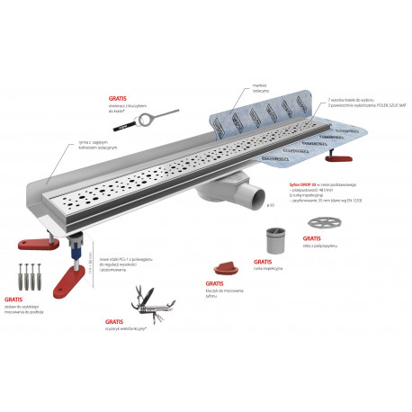 Wiper > Shower drain lines > Drain lines > Odpływy liniowe > Drainline wallmounting, pełny set, Wiper New Premium ZK, 1100mm, siphon Drop 35, wzór Ponente, finish szlif