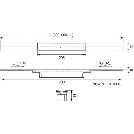 Siphon drain Tece Drainprofile, drain boczny Series: Drainage accessories