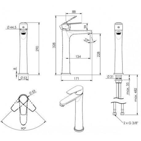 Gedy > Fittings/taps > Freestanding bathtub mixer taps > Como > Washbasin faucet tall Gedy Como standing, single lever - miedź szczotkowana
