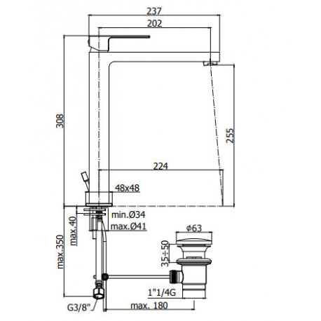 Paffoni > Fittings/taps > Freestanding bathtub mixer taps > Elle / Effe > Washbasin faucet Paffoni Elle, pionowa, korek click clack, chrome
