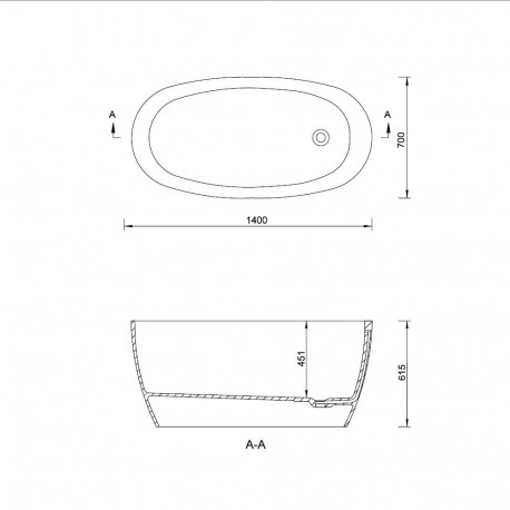 Omnires > Bathtubs > Freestanding bathtubs > Wanny wolnostojące > Bathtub freestanding Emporia Alia 140x70x61,5 cm z konglomeratu, bez zintegrowanego przelewu, with coating Snow White - white