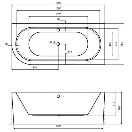 Besco > Bathtubs > Freestanding bathtubs > Avita > Bathtub freestanding Besco Avita A-Line, acrylic, right 170x75 cm, wallmounted, siphon z napełnieniem przez overflow white McAlpine czyszczony od góry - outside white shine, wewnątrz white shine