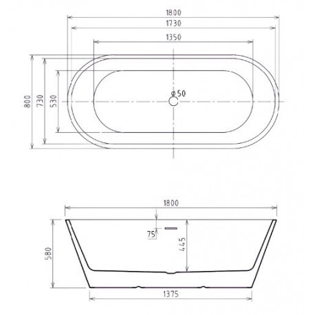 Besco > Bathtubs > Freestanding bathtubs > Deeva > Bathtub freestanding oval Besco Deeva 180x80 cm white shine, z overflow szczelinowym + maskownica odpływu white