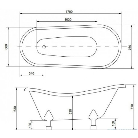 Besco > Bathtubs > Freestanding bathtubs > Assos > Bathtub freestanding oval Besco Otylia 170x77cm Retro + legs white