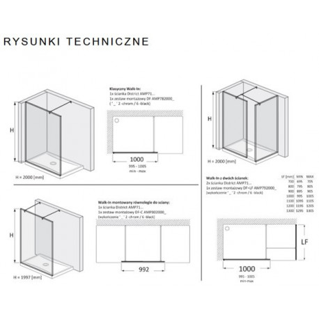 Installation kit Roca DF do kompletacji z ścianką District AMP71… (klasyczny Walk-In) Series: Square