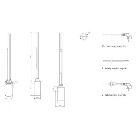* W wersji „S+” grzałka dodatkowo posiada włącznik umieszczony we wtyczce.