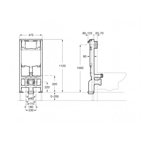 Roca > Sanitary ceramics > Hanging toilet bowls > Gap > Set concealed Roca DUPLO ONE + bowl WC wall-hung GAP SQUARE COMPACTO RIMLESS with soft-close WC seat SLIM, white