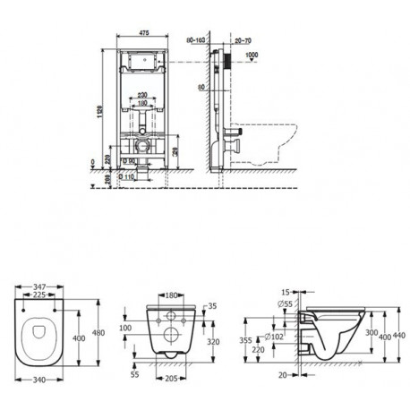 Roca > Sanitary ceramics > Hanging toilet bowls > Ona > Set concealed Roca DUPLO ONE + bowl WC wall-hung ONA RIMLESS COMPACTO with soft-close WC seat SLIM, white