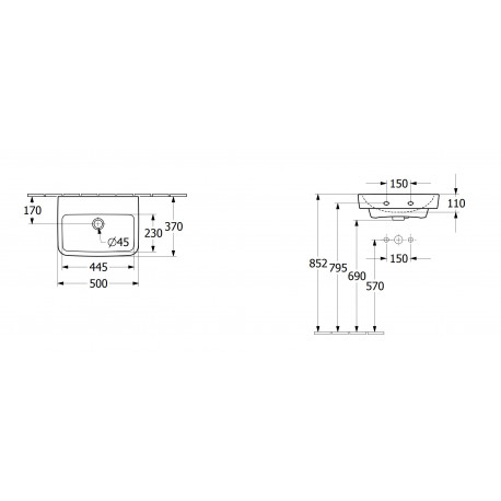 Villeroy & Boch > Sanitary ceramics > Hanging washbasins > O.Novo > Wall-hung washbasin Villeroy & Boch O.novo, 50x37cm, without overflow, without tap hole, Weiss Alpin