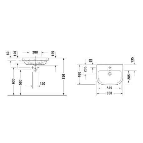 Duravit > Sanitary ceramics > Hanging washbasins > D-Code > Wall-hung washbasin Duravit D-Code 60x46 cm, with tap hole, z overflow, tył glazurowany - white