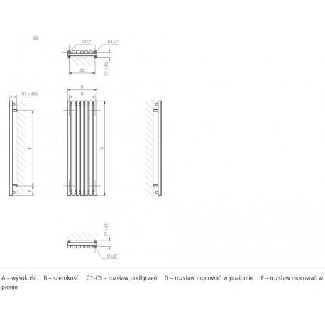 * Grzejnik występuje w wodnej wersji i dostępny również w wersji elektrycznej z grzałką.