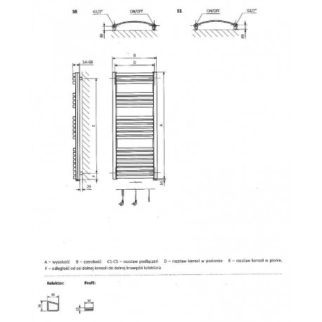 * Konstrukcja: kolektory pionowe 30x40 mm, profili poziome o przekroju kwadratu 20x20.