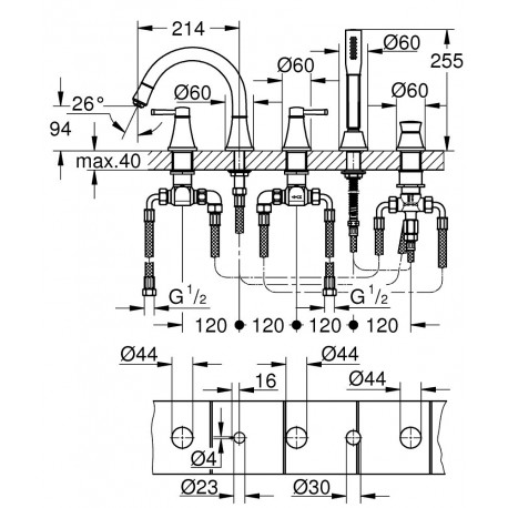 Grohe > Fittings/taps > Multi-hole bathtub mixer taps > Grandera > Bath tap Grohe Grandera pięciootworowa - chrome