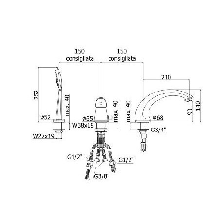 Paffoni > Fittings/taps > Multi-hole bathtub mixer taps > Duemila > Bath tap Paffoni Duemila, 3-hole - chrome