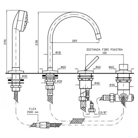 Bateria wannowa, wylewka obrotowa, wąż elastyczny.