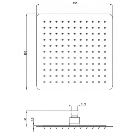 Deante > Fittings/taps > Rain shower heads > Cascada > Shower head Deante Cascada 250x250 mm, steel - titanium
