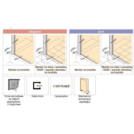 - z szklaną ścianką boczną (możliwe kombinacje asymetryczne)
