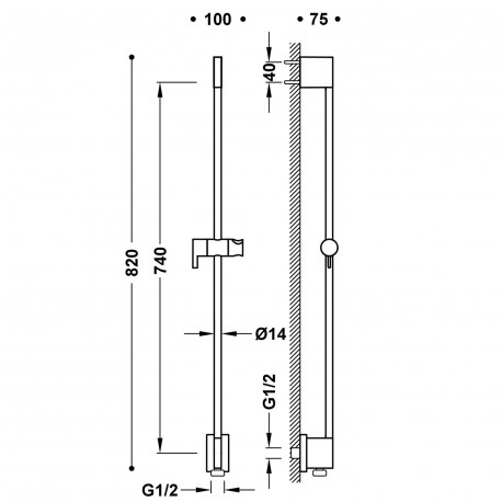 Rail przesuwny prysznicowy, Tres Complementos Ducha - Czerń Matt