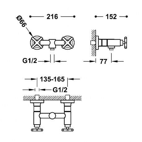 Tres > Fittings/taps > Shower Sets > Mont Blanc > Mixer two-handle wall mounted shower, TRES MONTBLANC - 24-K Matowe różowe gold
