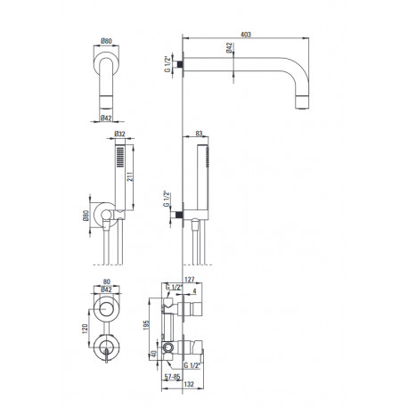 Deante > Fittings/taps > Shower Sets > Silia > Shower set concealed z główką shower, Deante Silia - nero (black mat)