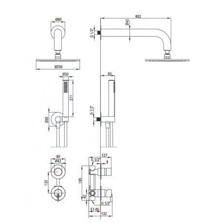 Deante > Fittings/taps > Shower Sets > Silia > Shower set concealed z główką shower, Deante Silia - nero (black mat)