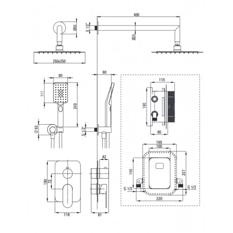 Deante > Fittings/taps > Shower Sets > Alpinia > Shower set concealed z BOXem mieszaczowym, Deante Alpinia - nero (black mat)