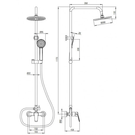Deante > Fittings/taps > Shower Sets > Boro > Shower set Deante Boro wall mounted with head shower 20 cm - black