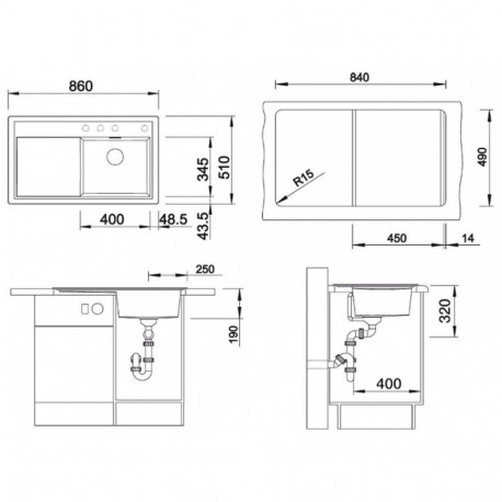 Blanco > Kitchen sinks > Zlewozmywaki kuchenne > Inset > Zlew konglomeratowy ZENAR 45 S Blanco Silgranit komora left with pop-up waste antracyt
