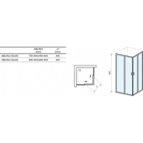 Ravak > Shower cabins > Square/rectangular cabins > Blix II > Shower cabin Ravak Blix II NBLRV2, czteroczęściowa corner 90x90x195 cm, glass transparent z warstwą AntiCalc, profil shiny chromee