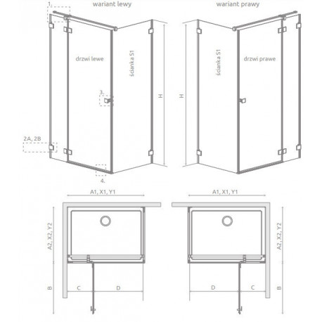 Składając zamówienie należy podać 2 numery artykułów: door oraz ścianki side S1