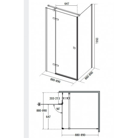 Besco > Shower cabins > Square/rectangular cabins > Pixa Gold > Shower cabin rectangular Besco Pixa Gold, 90x90x195 cm, left, glass transparent, profil gold