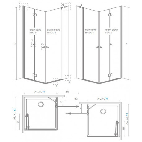 :) Shower cabin Radaway Nes Brushed Copper H-KDD II 90, part left, door 900x2000mm - glass transparent, profil miedź szczotkowany: