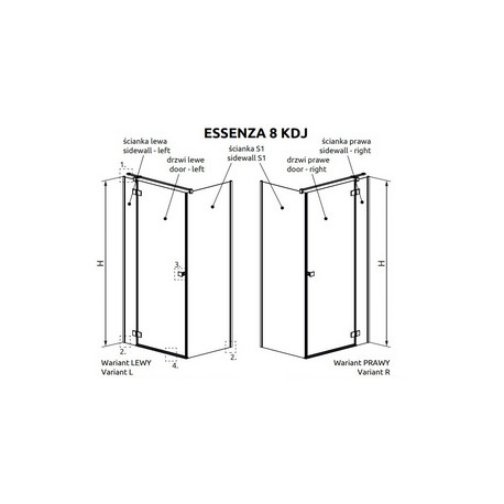 Radaway > Shower cabins > Square/rectangular cabins > Essenza Pro > Door cabins prysznicowej Radaway Essenza 8 KDJ 100, left, 1000x2000 mm - glass transparent, profil GunMetal