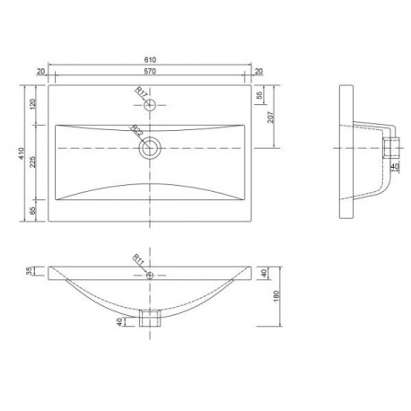 Defra > Sanitary ceramics > Furniture washbasins > Meblowe > Vanity washbasin Defra Go 60, rectangular 61x41 cm, with hole na baterie, z overflow - white